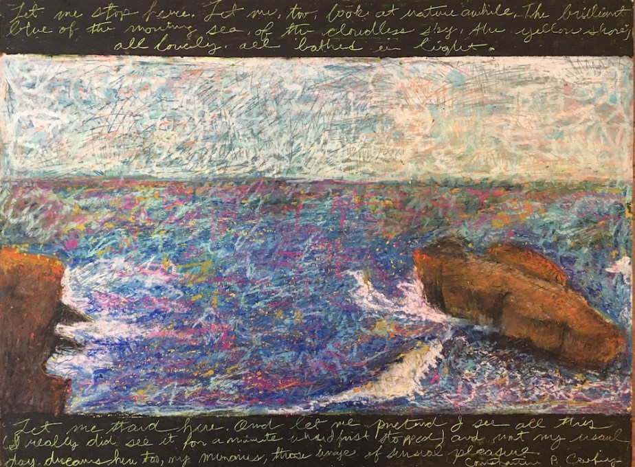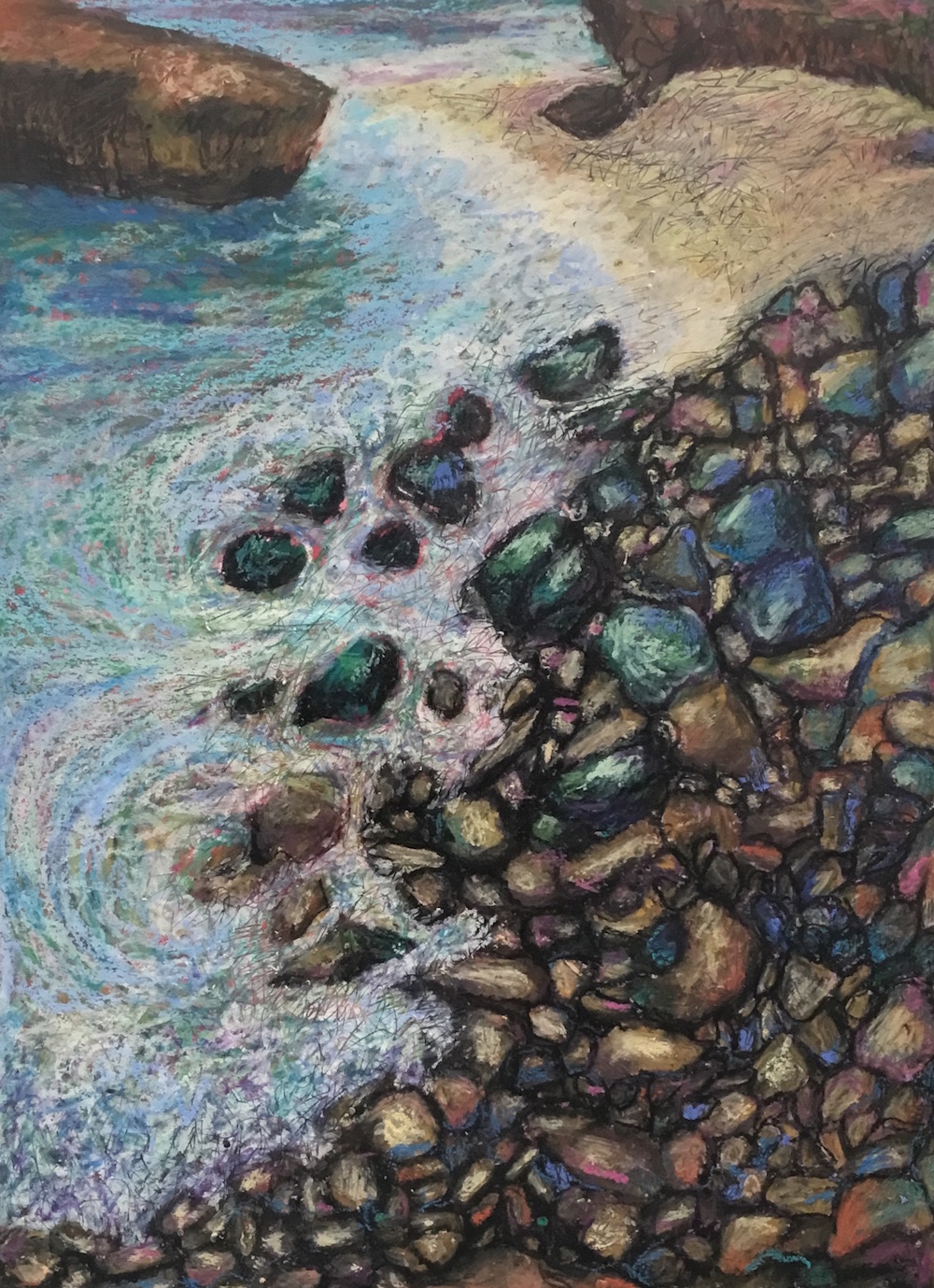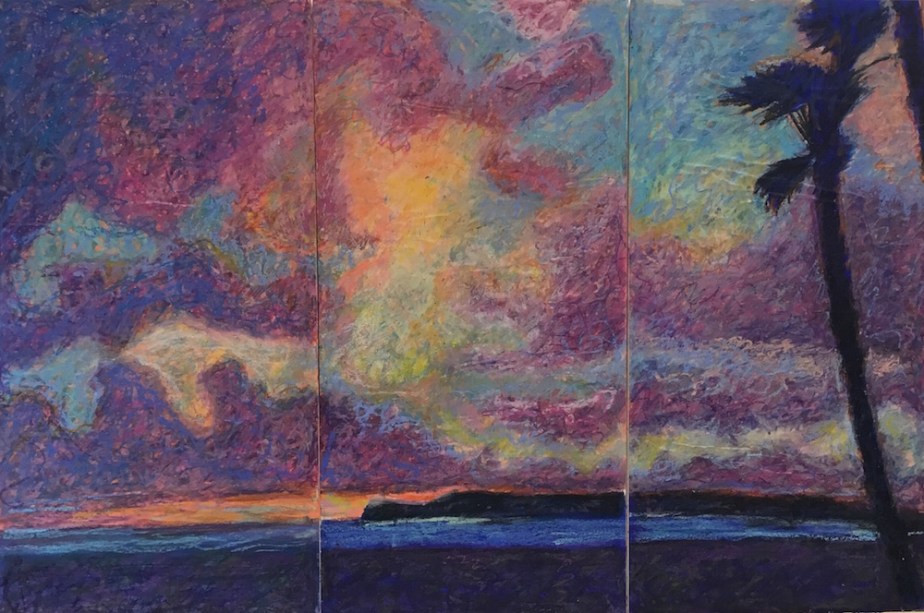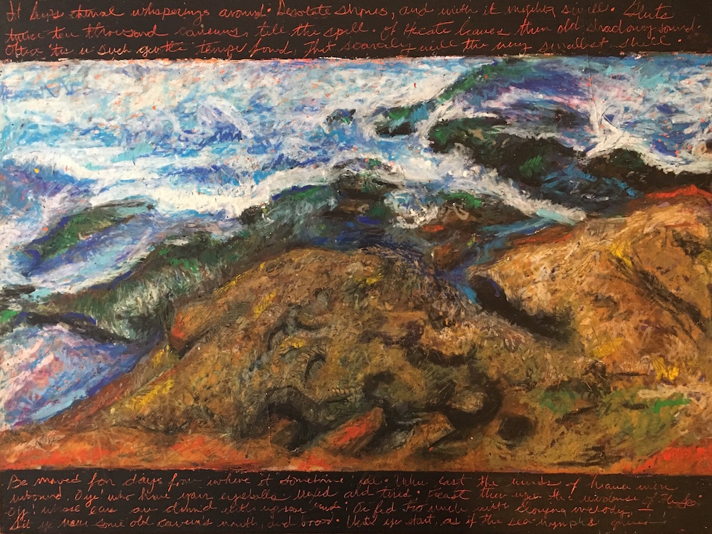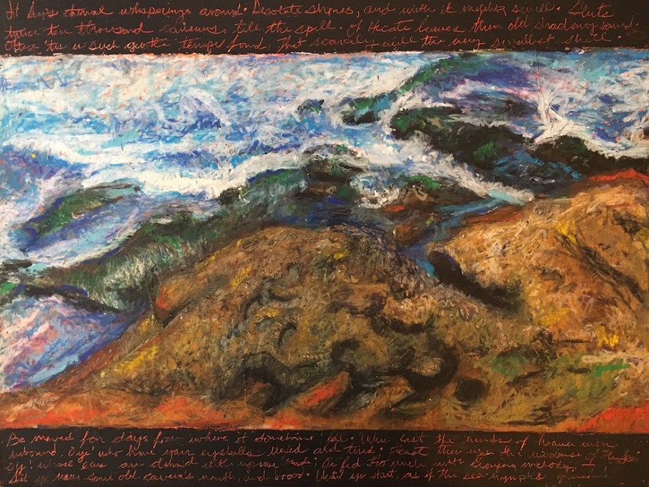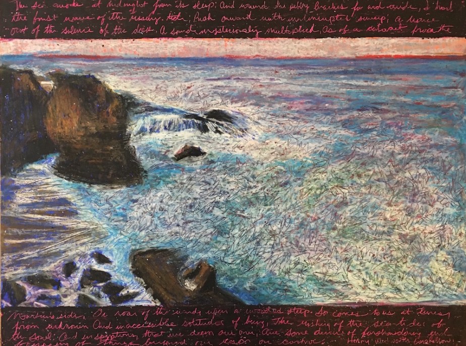 Sound of the Sea, was selected for exhibition in the 2019 Del Mar Fair, 24″ x 18″, Oil Pastel Mounted on Wood Panel, 2019. $300