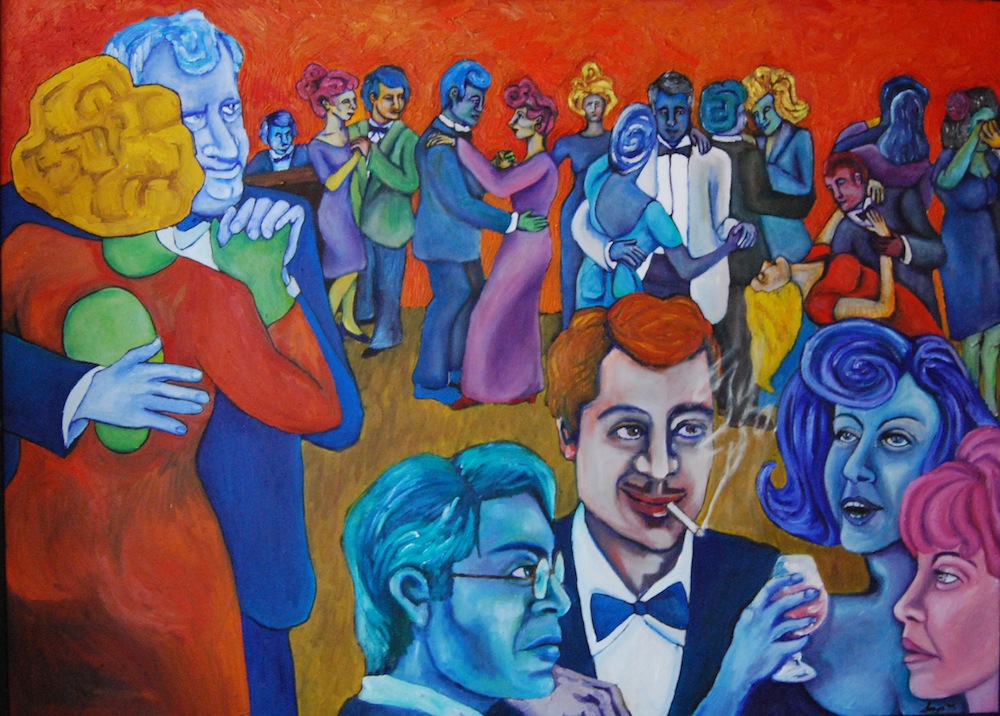 Here is an Oldie, but still a Goodie! I created this painting in CELEBRATION of my sister’s wedding 28 years ago! It was a 4 day extravaganza and a super special funning- it event! I used to paint only the things that made me happy- friends, family, parties, babies, dogs- because I reasoned that there were enough images of pain and ugliness in the world that I didn’t need to add to all that unhappiness…. Now I may, occasionally, make a painting or series with a “unhappy” or critical intent, but my paintings always contain humor and a “f**k IT all” attitude, because you have to laugh, otherwise you will cry and cry! Anyways, I hope to be celebrating life with friends and family and just random people again! Let’s get this Pandemic in hand already! Life is a book and everyday is a new page, so just keep reading and resist skipping ahead to find out how it all ends, you may just be surprised! Ha! :)