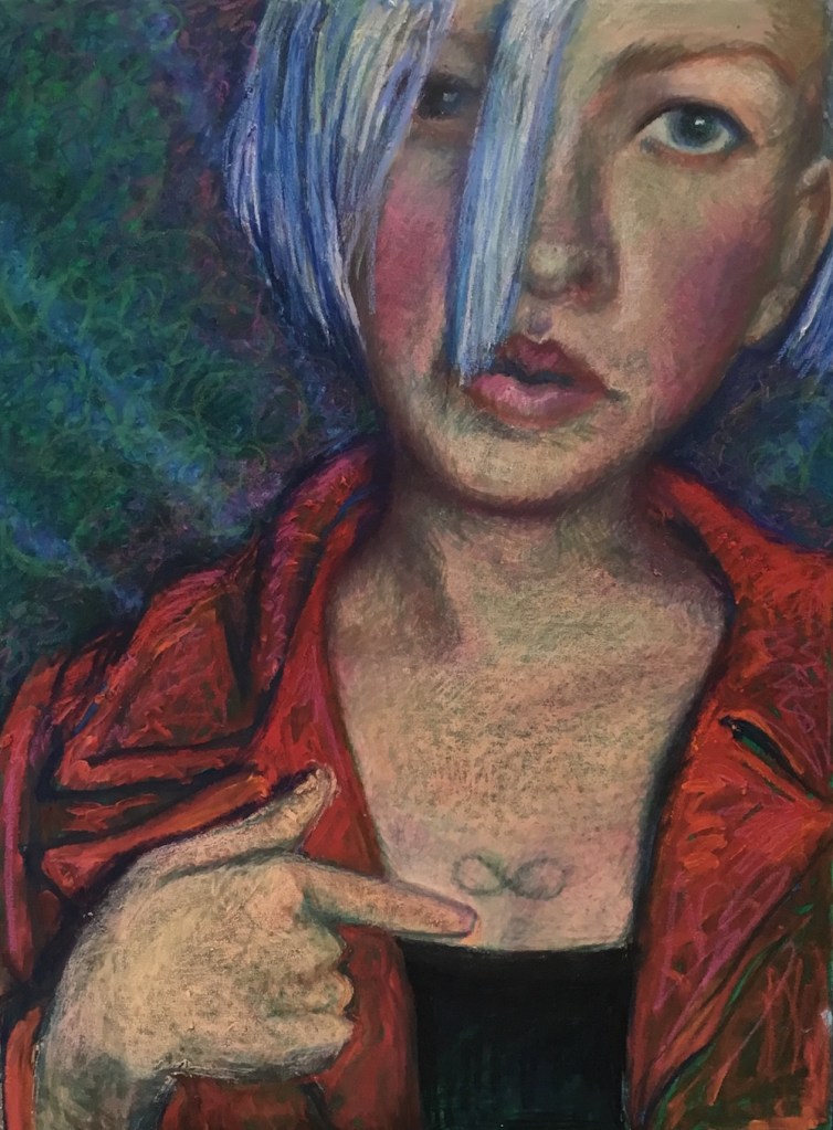 36″ X 48″ Oil Paint and Oil Pastel on canvas … This painting is from a photograph I took of my beautiful friend in Paris when we were in art school, she was a truly remarkable spirit!